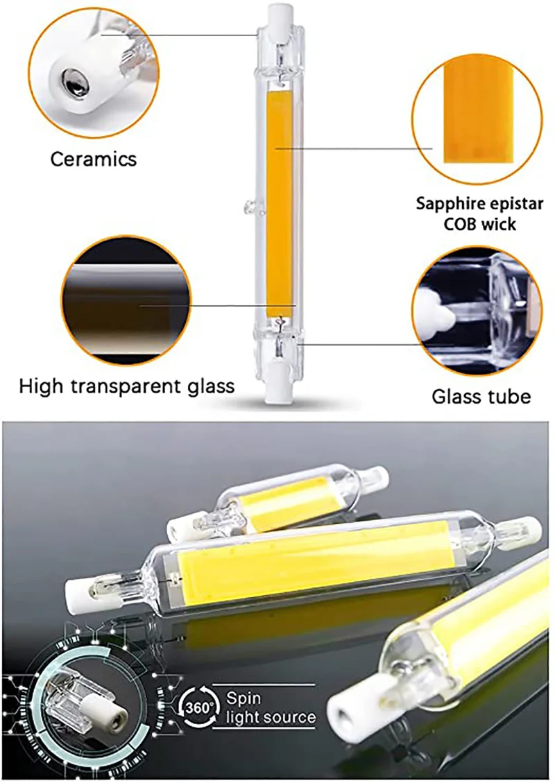 Спецификация:Название продукта: стеклянный COB R7S светодиодный светильникВыходная мощность: