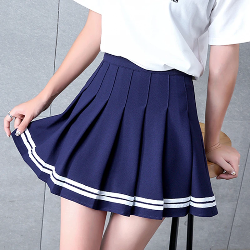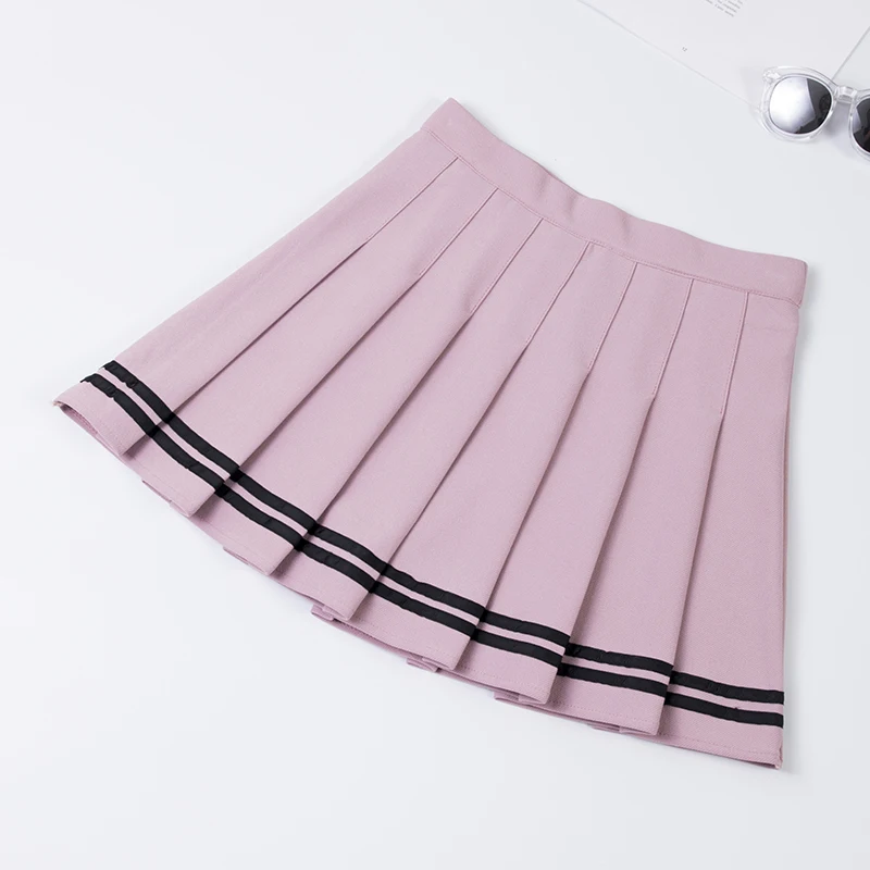 Женские юбки в полоску с высокой талией, плиссированная юбка с эластичной талией, Милая Мини-юбка, женская танцевальная юбка, однотонная короткая юбка
