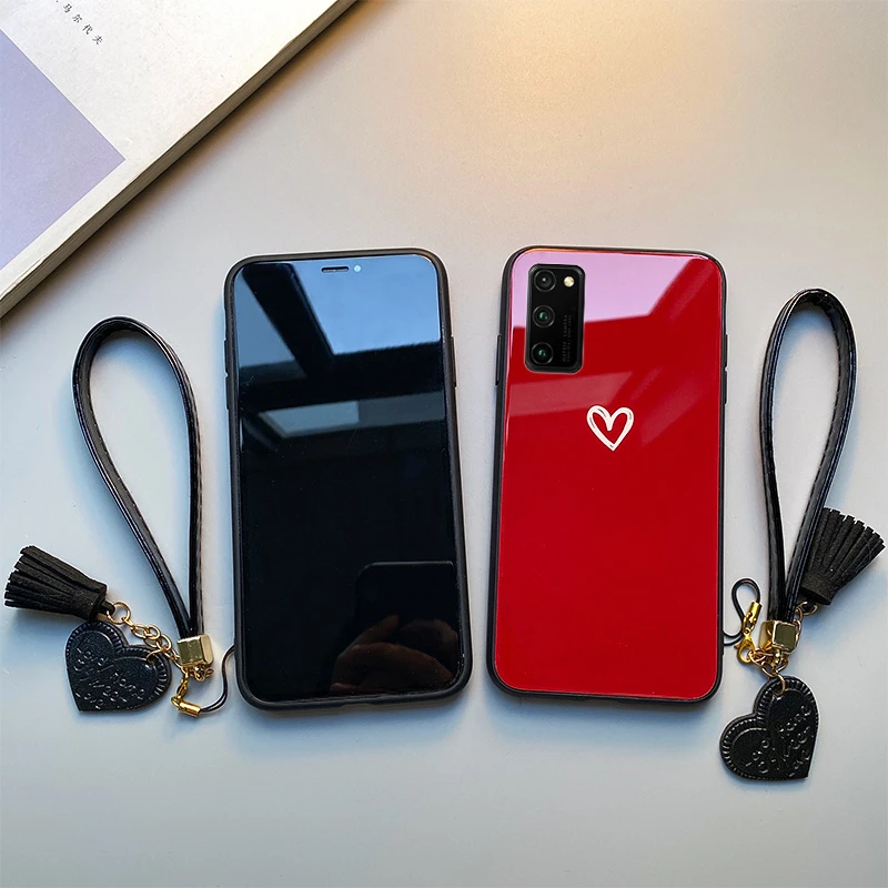 Для Samsung S21 Ультра чехол черный красный сердце любовь Жесткий закаленное стекло чехлы для телефонов Samsung A72 A52 A42 A32 A12 5G A02S A11 A21