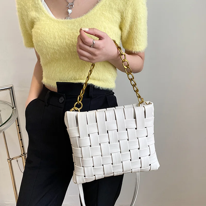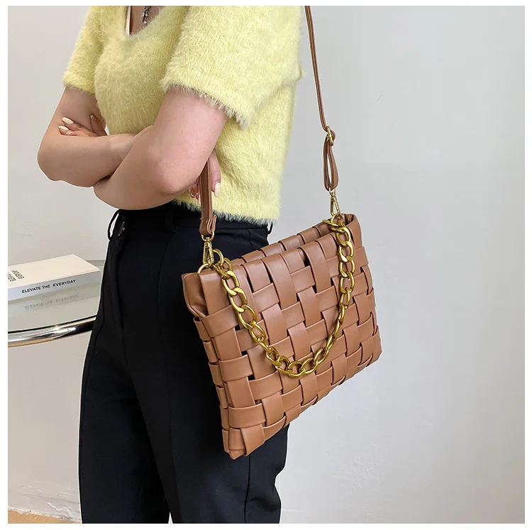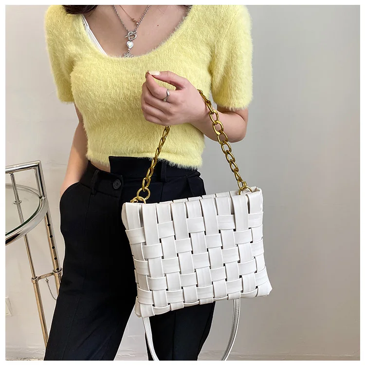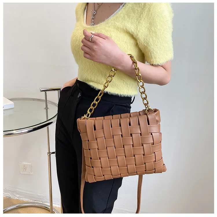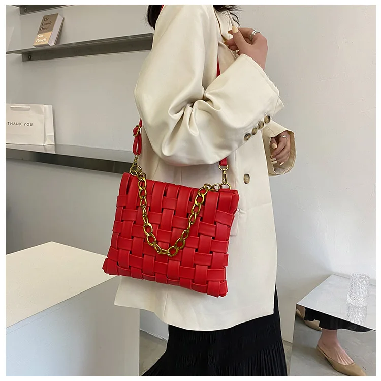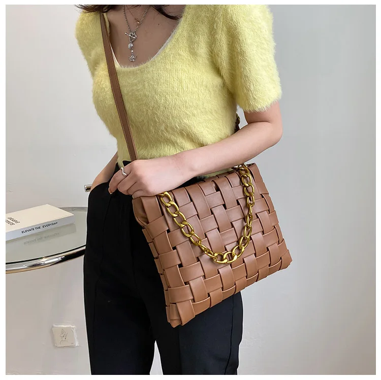 Дизайнерские плетеные сумки на цепочке для женщин, сумка-мессенджер для покупок, роскошные брендовые сумочки через плечо, большие кошельки, 20021