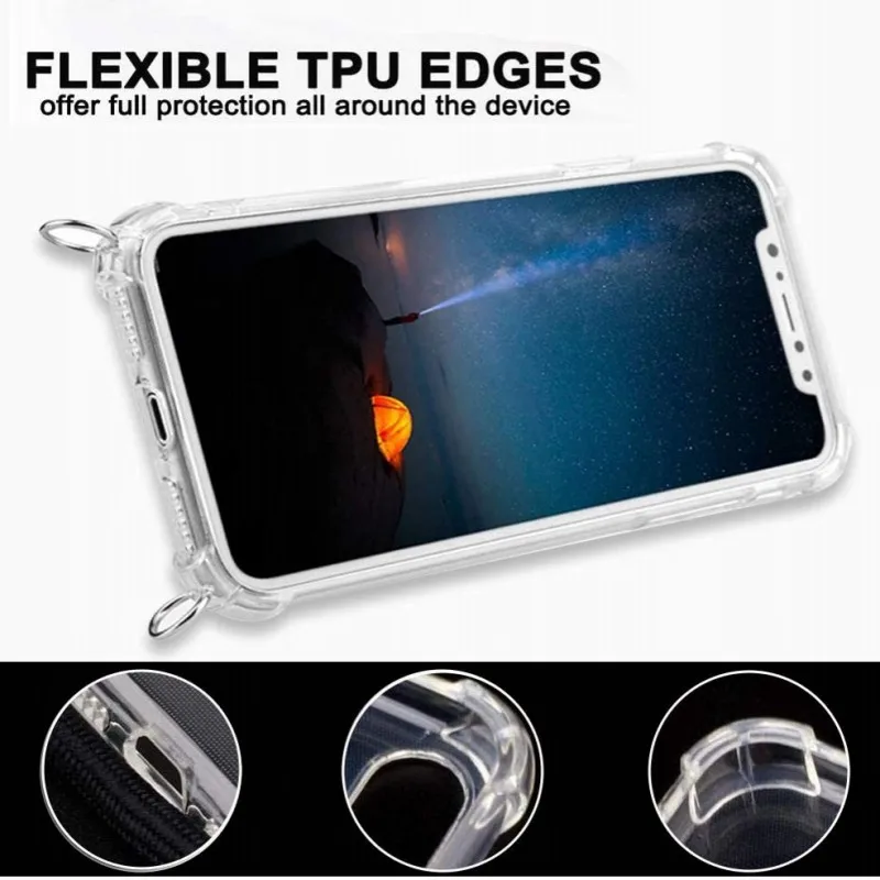 Чехол для Xiaomi Redmi Note 10 Pro 9 9A POCO X3 NFC с цепочкой через плечо, ударопрочный прозрачный чехол