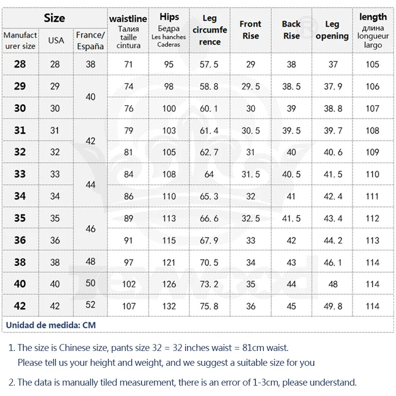 Единица измерения: см1. Размер-китайский размер, брюки-Размер 32 = 32 дюйма Талия = 81 см талия.Пожалуйста, сообщите нам ваш рост и вес, и мы предлагаем вам подходящий размер.2. Данные измерены вручную, возможна погрешность в 1-3 см, пожалуйста, поймите.3. Из-за различий в освещении светильник и различных мониторов, Хроматическая аберрация s светильник будет вызвана. Пожалуйста, ознакомьтесь с фактическим цветом полученных товаров.