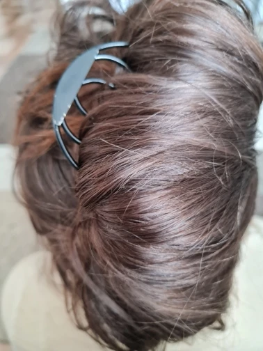 Заколка хорошего качества, но никак не могу приспособиться, ничего не получается, не держит мои волосы. Буду дальше пробовать.