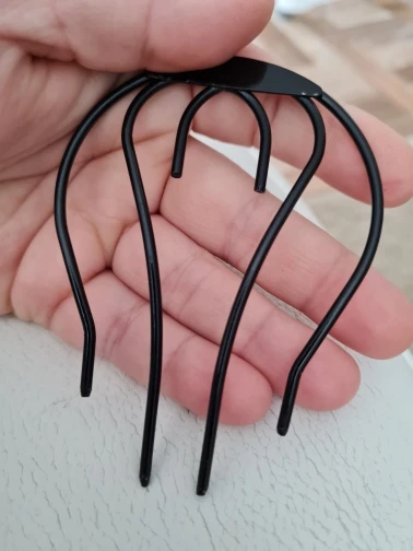 Металл толще чем заявлено на фото. Она ещё и тяжёлая. И от тяжести съезжает по волосам соответственно не держит. На концах очень толстые обрубленные края и волос просто дерёт. По фото отзывам видно что другие модели заколок сделаны из более тонкого метала. Модель которую выбрала я не соответствует заявленной.
