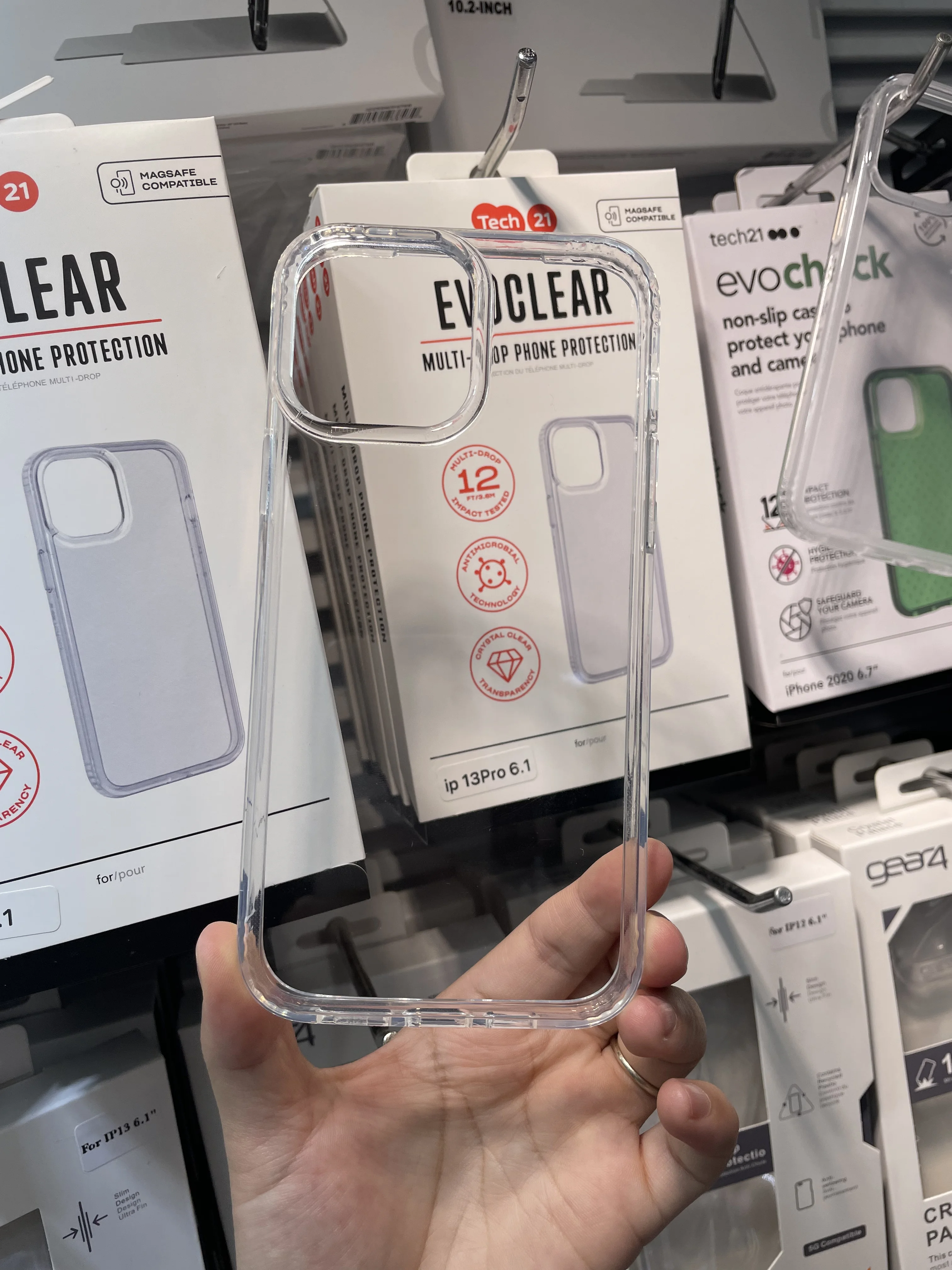 Tech21 Evo ClearПолностью прозрачный чехол, который дает вам возможность восхищаться великолепной красотой оригинального дизайна вашего iPhone. Этот гигиенически чистый чехол защищает ваш iPhone-и его камеру-любым способом, в то время как встроенные устойчивые к ультрафиолетовому излучению материалы гарантируют, что он не будет желтым или обесцвечиваться при солнечном свете