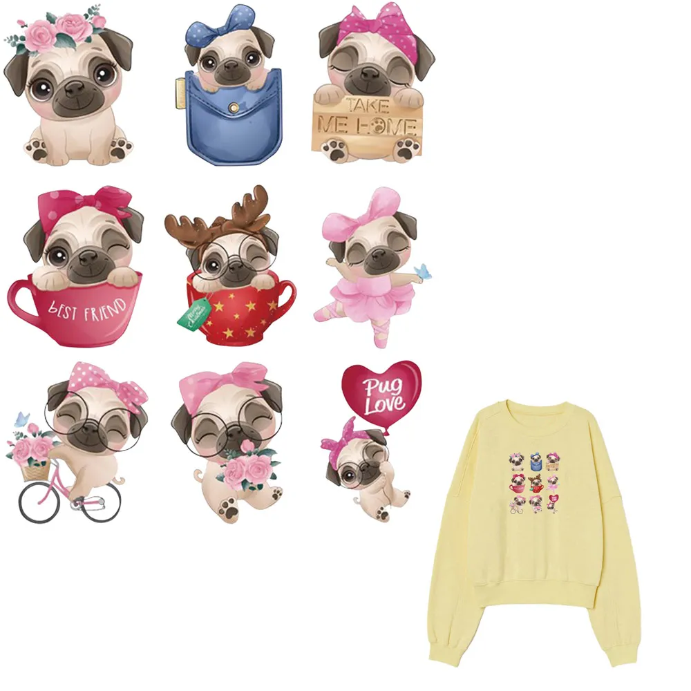 Термонаклейки для одежды Happy Pugs термо-Стикеры для одежды, винил...