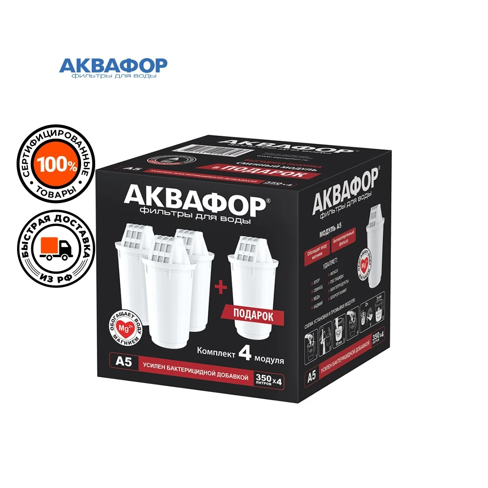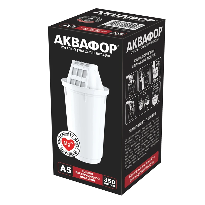 Картридж A5 создан специально для сложной водопроводной воды: ржавой, мутной, с большим количеством механических примесей. Даже в таких условиях A5 не забивается раньше времени, и продолжает очищать вашу воду от хлора и других растворенных примесей.Конструкция кувшинного модуля A5 позволяет ему самоочищаться каждый раз, когда вы набираете новую порцию воды в воронку. В итоге вы не меняете модуль в кувшине слишком часто. Учитывая также повышенный ресурс, модуль будет служить до 3 месяцев в семье из 3-х человек.Картридж A5 также сохраняет в воде природный магний, который полезен для работы сердца и сосудов. По данным ВОЗ, магний является самым дефицитным минералом для населения Земли: получить норму магния с обычным рационом питания в городе - очень сложно, а его недостаток вызывает заболевания нервной и сердечно-сосудистой системы.Картридж А5 содержит природный минерал - перламутровый доломит, который сохраняет магний. Он легко усваивается и предотвращает заболевания сердца и сосудов.Используется в кувшинах Аквафор c круглым гнездом посадки картриджа диаметром 7 см. Например, для кувшина “Прованс”