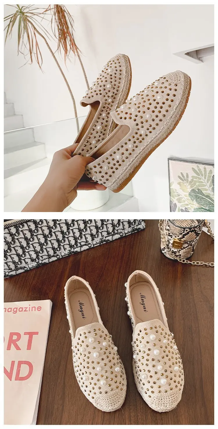 Женские кроссовки с бантом, женская обувь, искусственная конопляная обувь, слипоны, Мокасины, Лидер продаж, эспадрильи с кристаллами, женская обувь на плоской подошве
