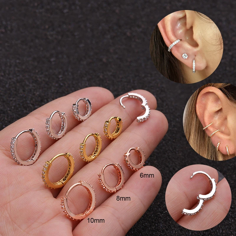 6, 8, 10 мм, 1 шт., разноцветные бриллиантовые круглые серьги-обруч...