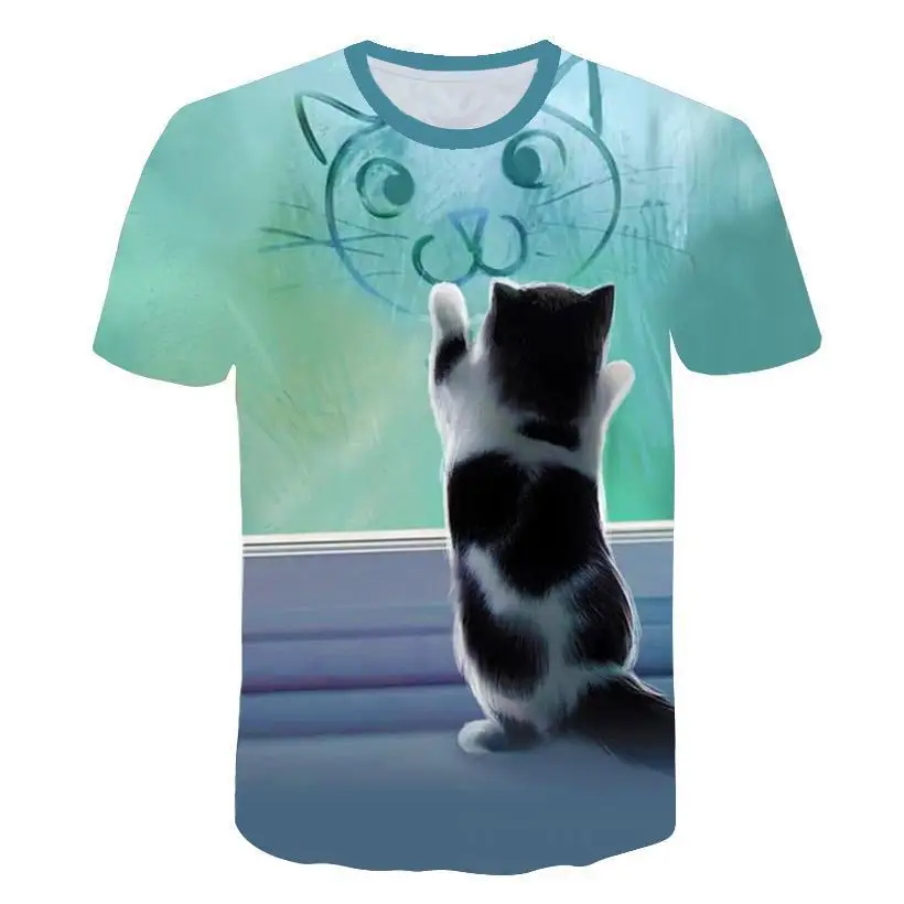 Футболка с 3D-принтом кошки для мужчин и женщин, модная рубашка с к...