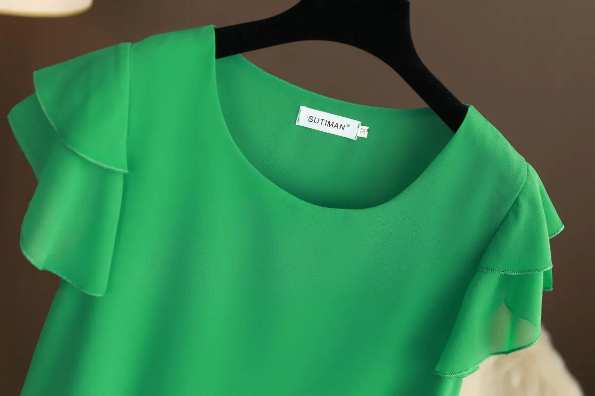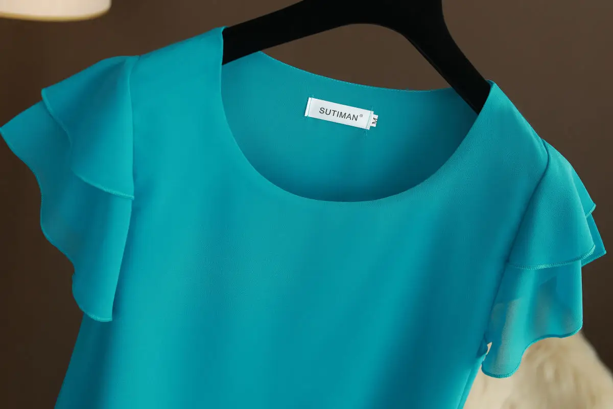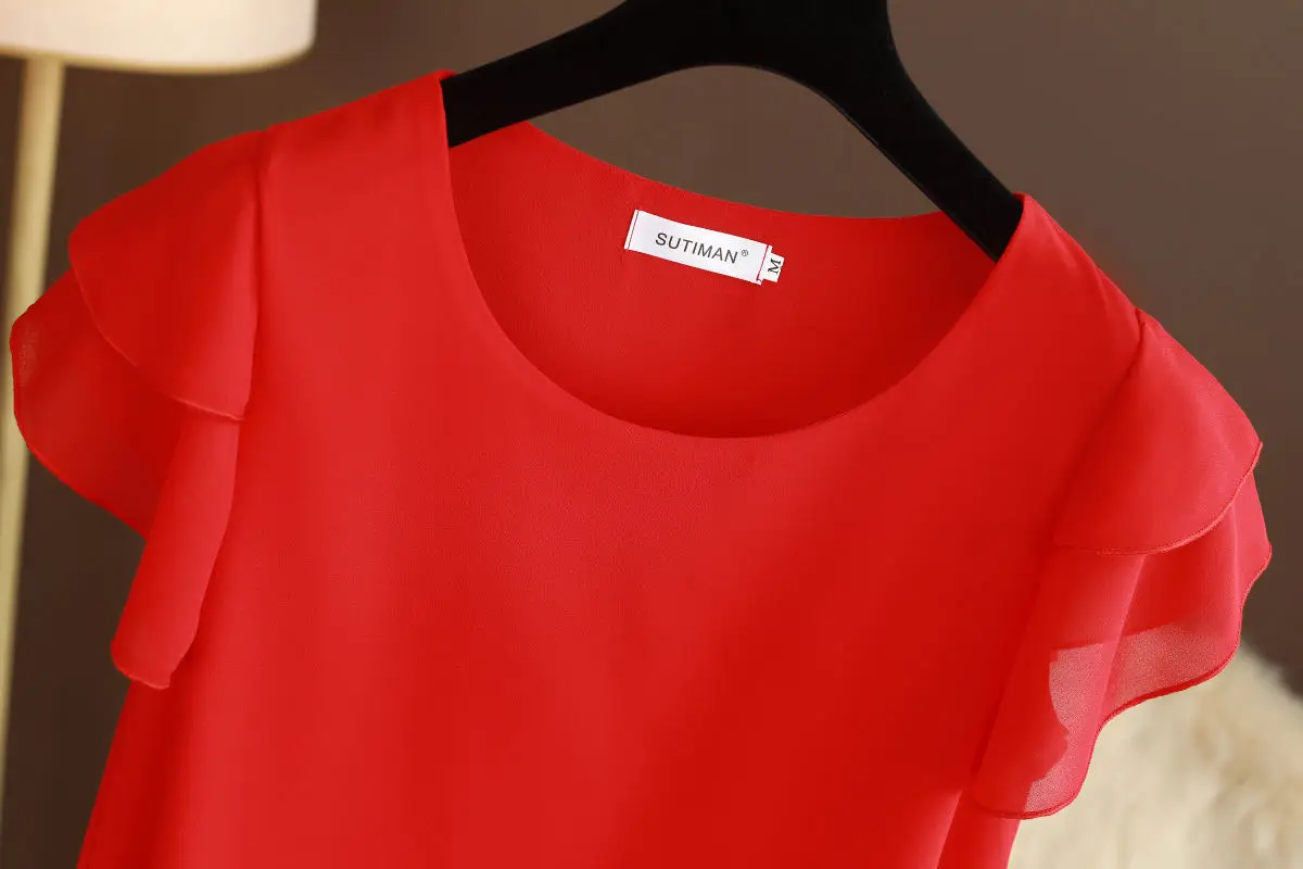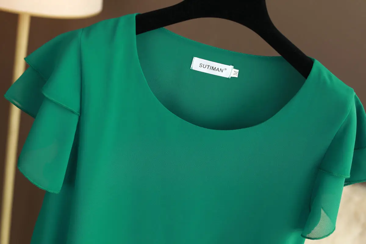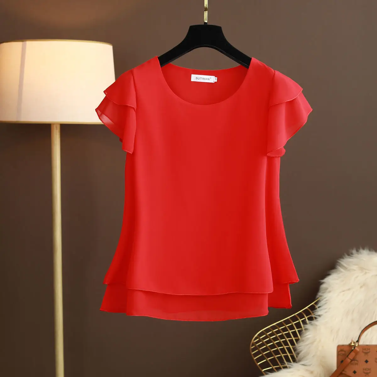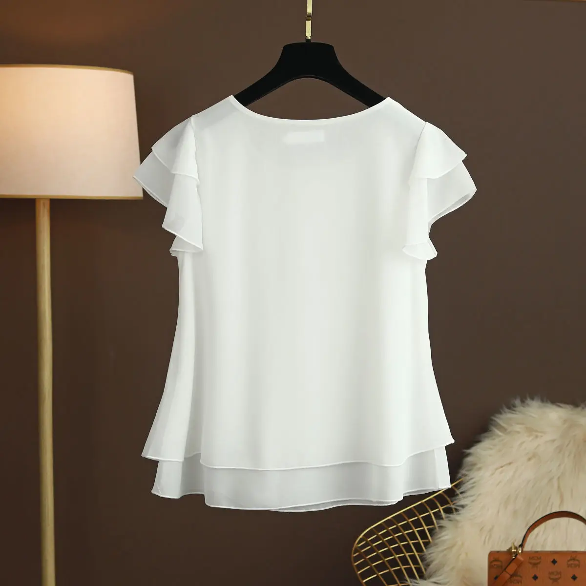Шифоновая рубашка с круглым вырезом, женская блузка с коротким рукавом, рубашки 6XL, Женские топы и блузки, топ, новая летняя женская блузка свободного кроя