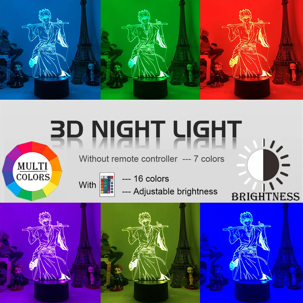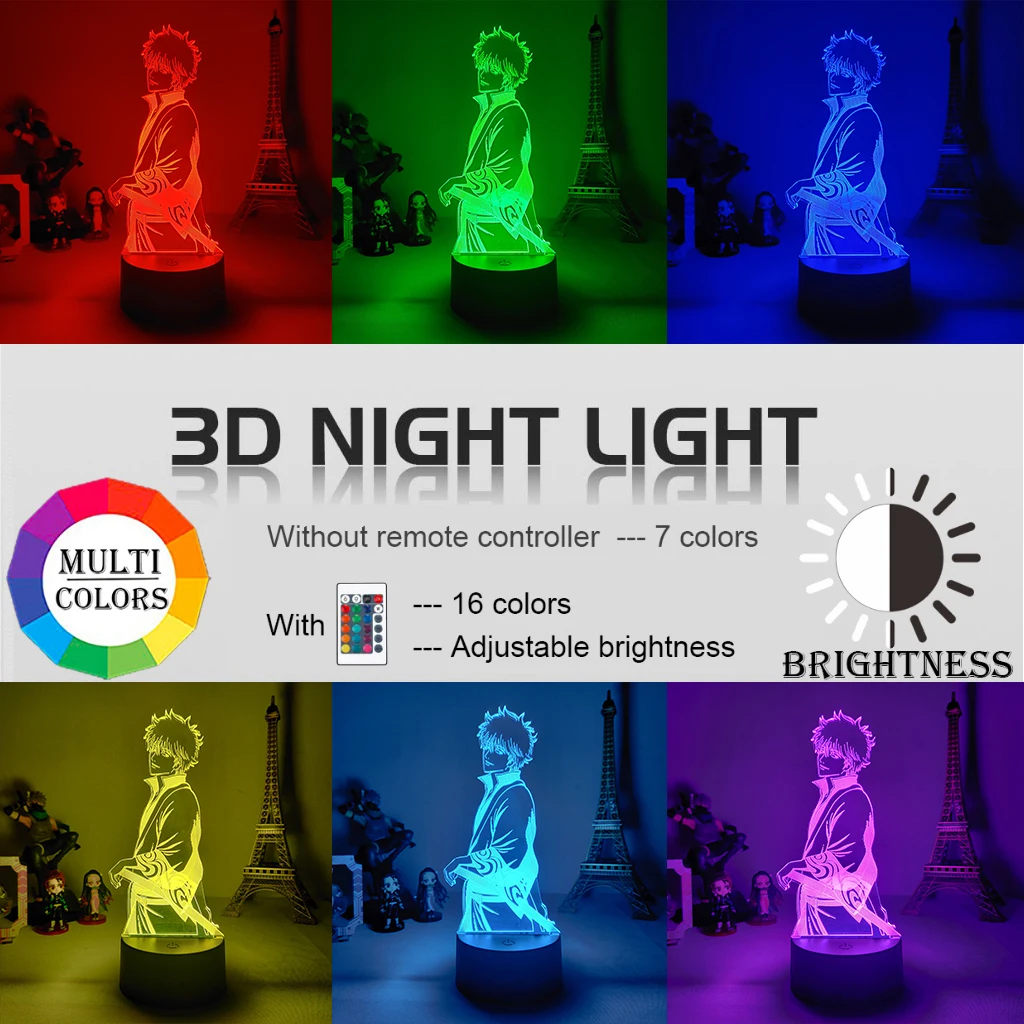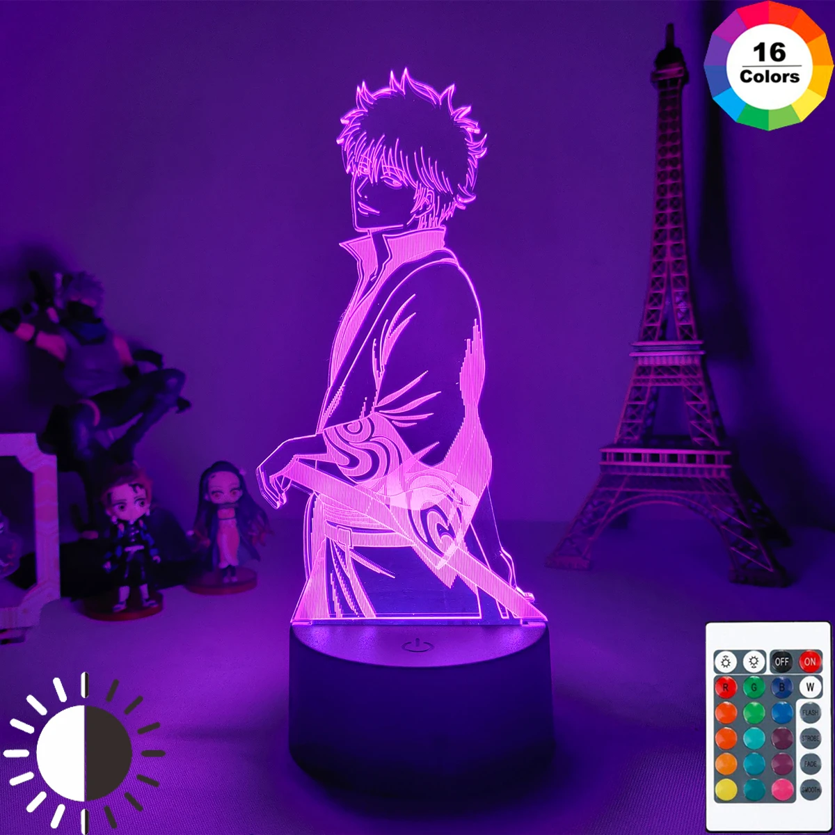 Короткая футболка с героями из японского аниме светильник "гинтама" Sakata Gintoki рисунок ночной Светильник 3D светодиодный потолочный светильник для детей подарок на день рождения настольная лампа дропшиппинг