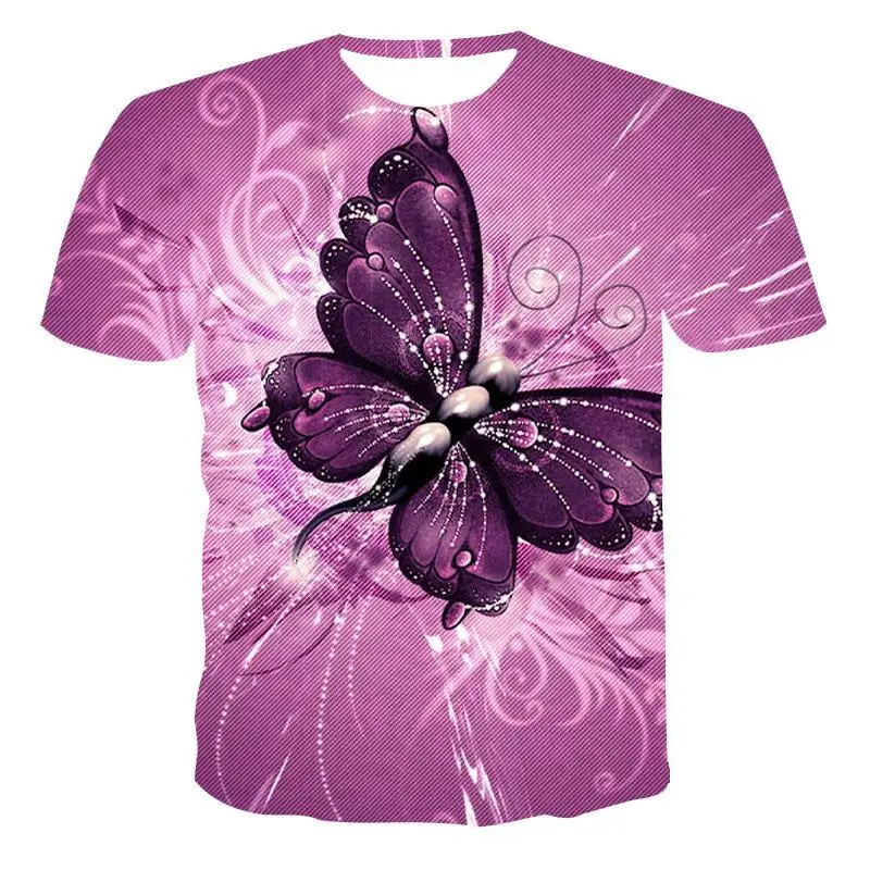 Футболка мужская с круглым вырезом, модная красивая тенниска с 3D-принтом в виде бабочки, с коротким рукавом