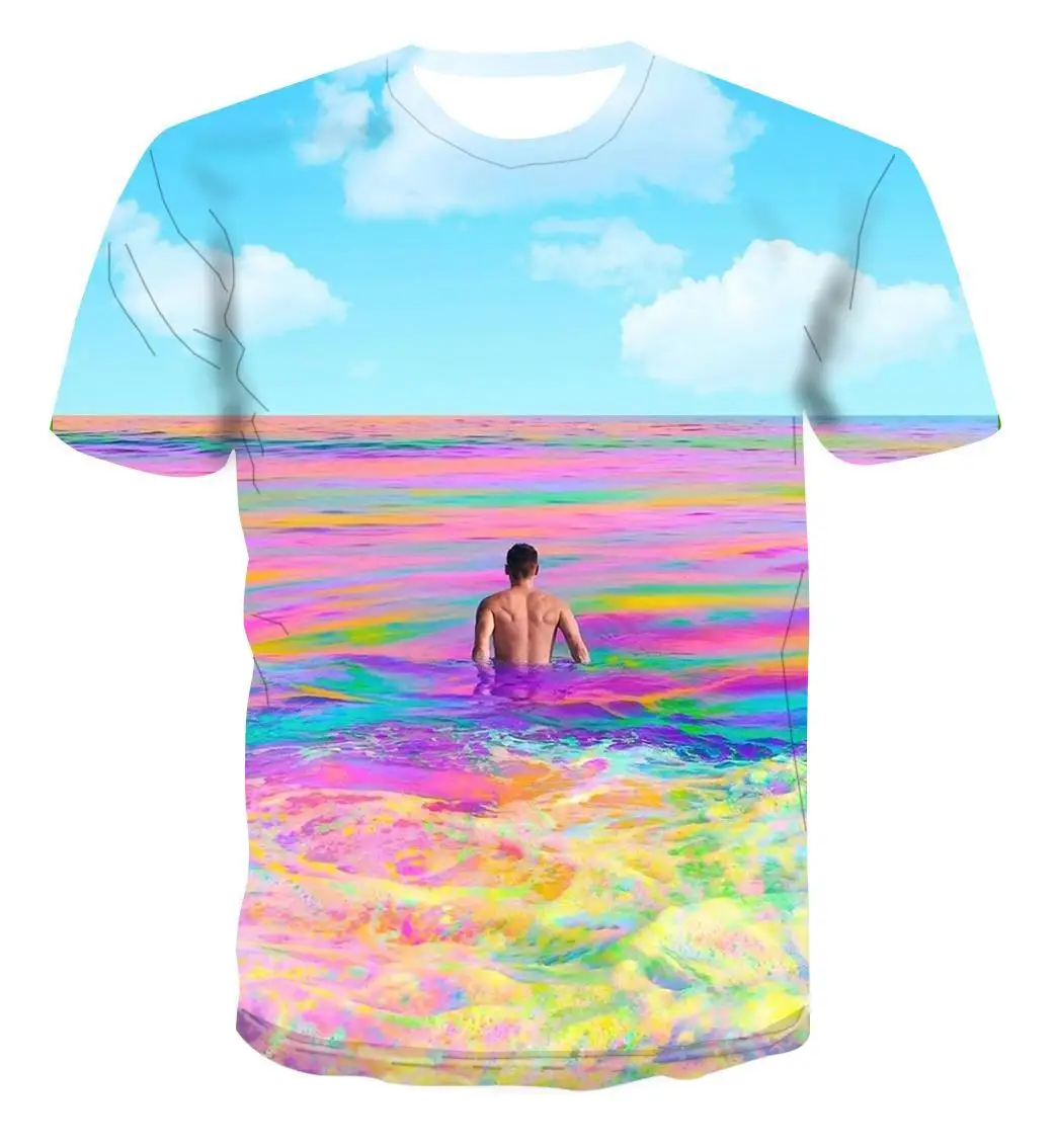 Новинка 2020, цветная летняя футболка с 3d-динамическим принтом и г...