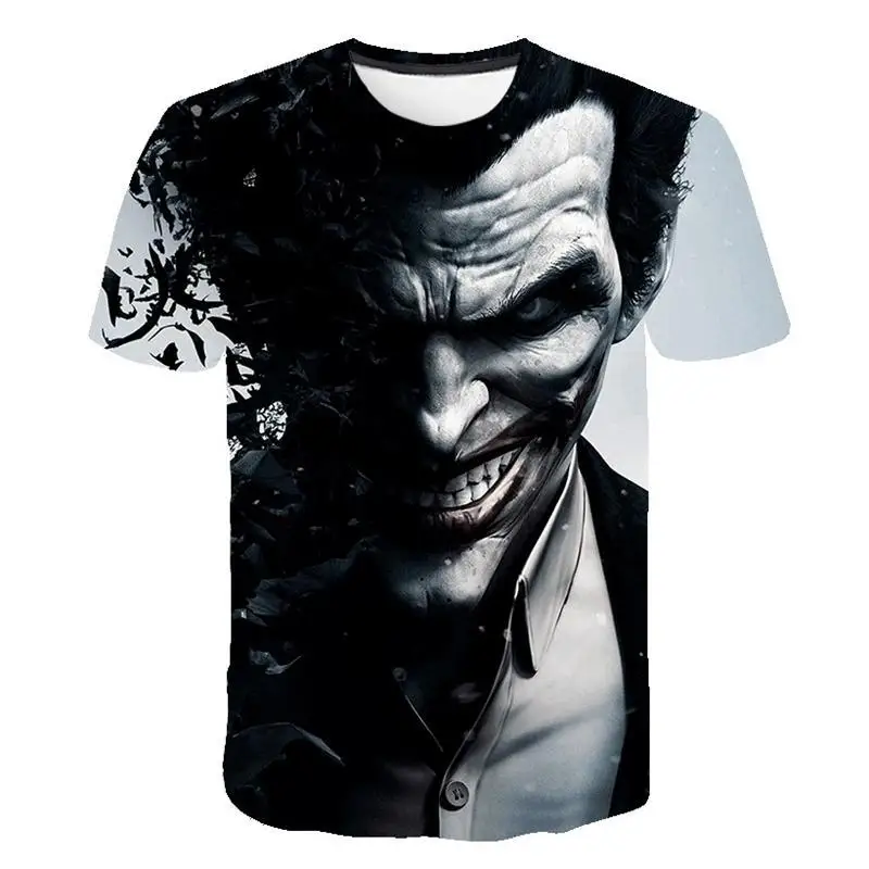 Футболка мужская с 3d принтом, забавная тенниска с круглым вырезом, с лицом Джокера, клоуна, с коротким рукавом, для косплея покемона, отряд самоубийц