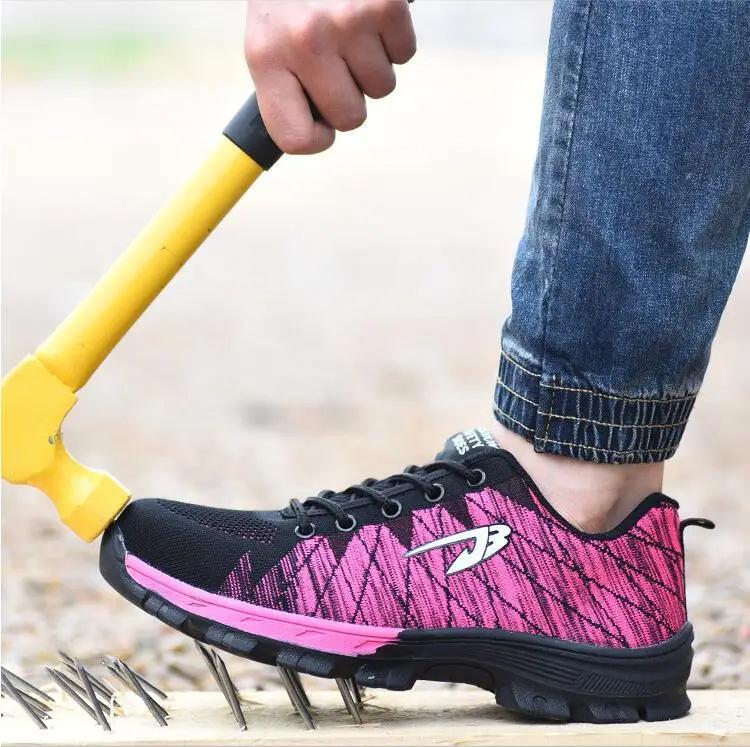Женские повседневные дышащие ботинки со стальным носком, Рабочая защитная обувь, рабочие защитные ботинки, женская Нескользящая защитная обувь для мужчин