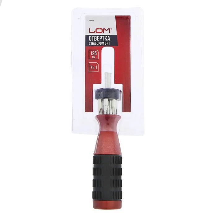 Отвертка с набором бит LOM, 7 предметов, 125 мм 2296291