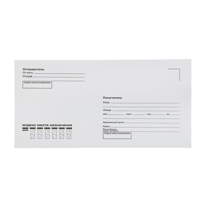 Конверт почтовый E65 110х220 мм, поле «Кому-куда», без окна, силиконовая лента, внутренняя запечатка, 80 г/м², в упаковке 100 шт