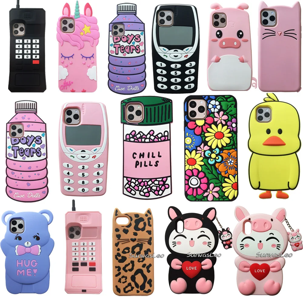 Для iPhone 7, 8 Plus, X, XS, XR, 11, 12 Pro Max, для iPhone 5 5s, 5C, SE, 6, 6s Plus, 3D мультяшный Мягкий силиконовый чехол, задняя крышка телефона