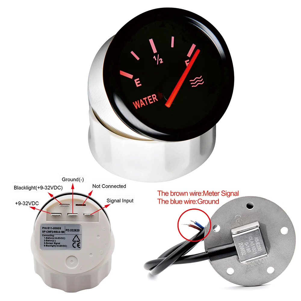 Датчики уровня воды для лодки 0-190 Ом, 52 мм, новый водонепроницаемый индикатор уровня для резервуара для воды, инструмент для определения уровня воды 9-32 В
