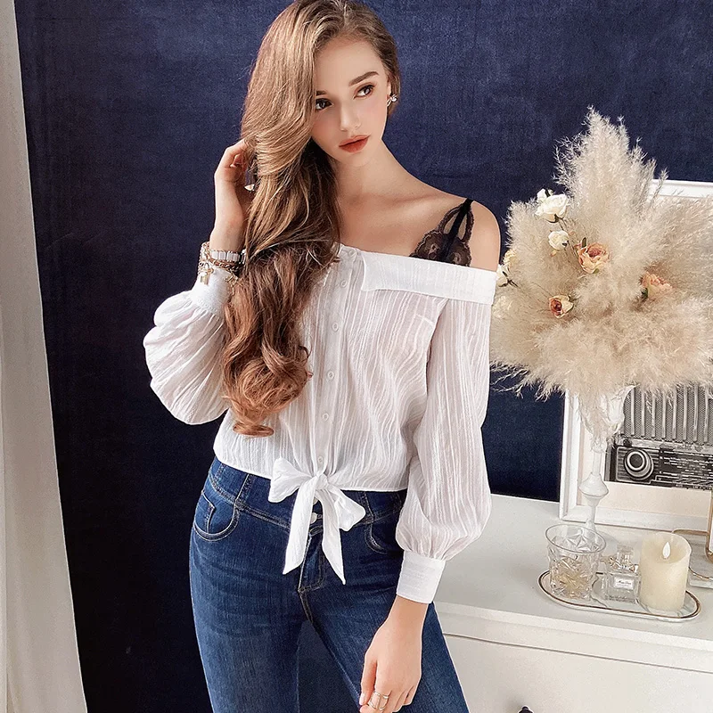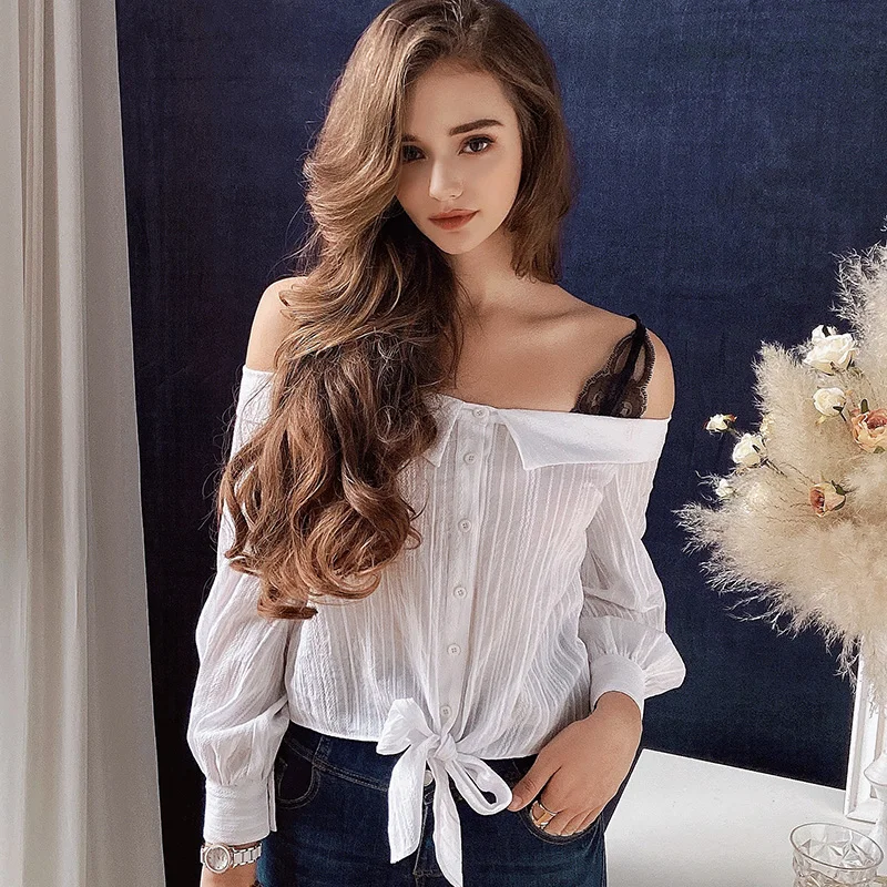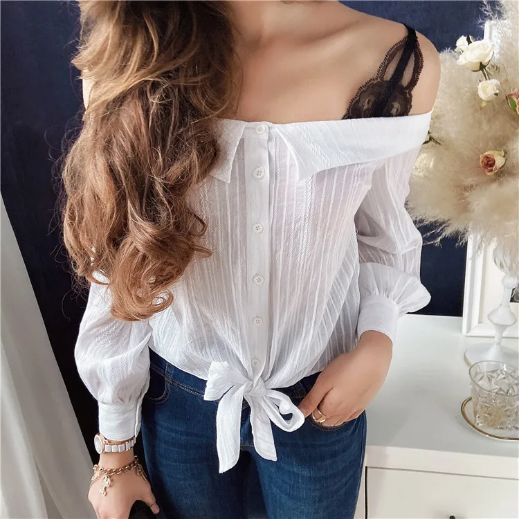 Блузка Dabuwawa женская с открытыми плечами, пикантная белая одното...