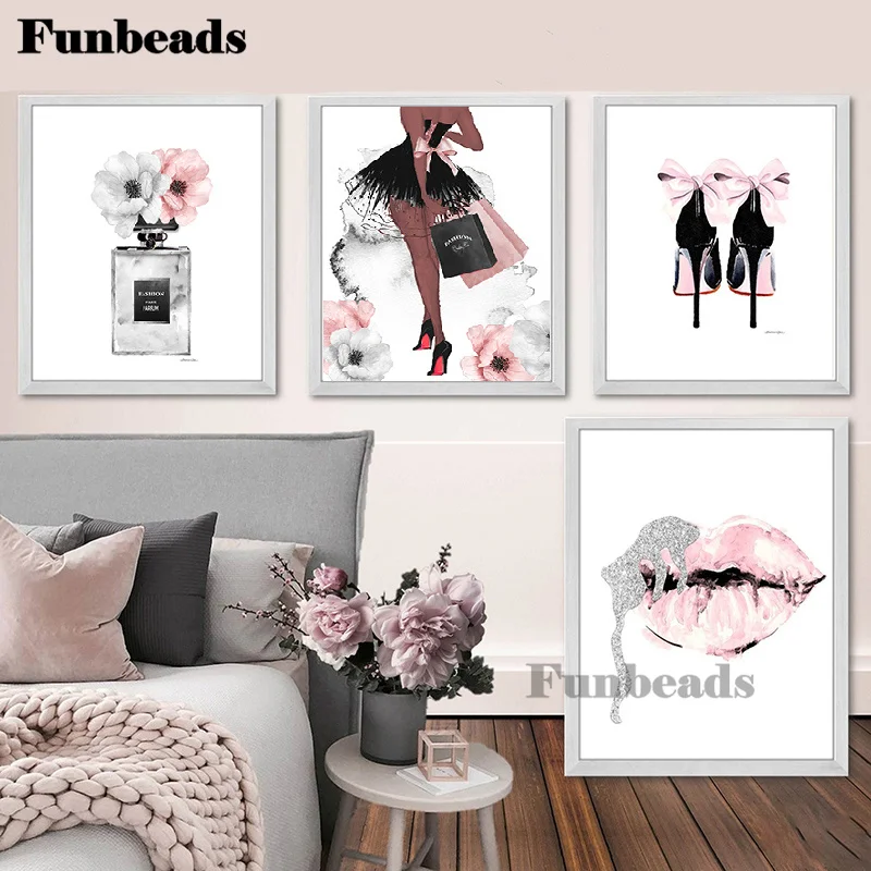 Алмазная живопись, вышивка крестиком, настенное искусство, женские духи, губы, в нордическом стиле, на высоких каблуках, алмазная живопись, вышивка, домашний декор FF4170