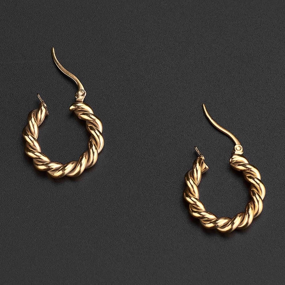 Серьги-кольца из нержавеющей стали женские, золотистые мини-витые ювелирные украшения в минималистском стиле, подарок для Него