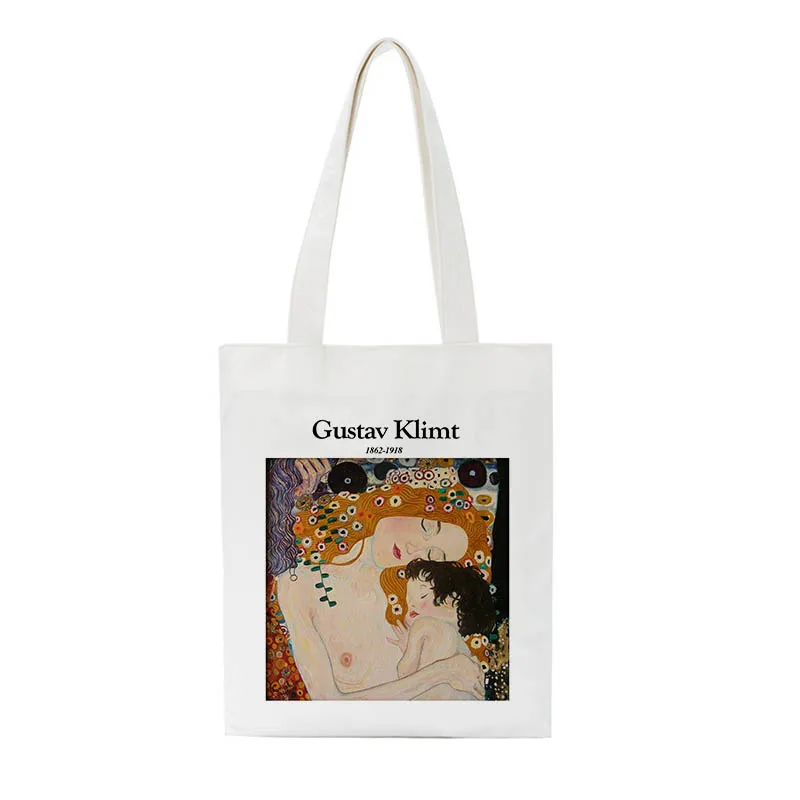 Сумка Gustav Klimt, новая сумка для покупок, повседневная вместительная Холщовая Сумка в стиле Харадзюку, веселая модная винтажная женская сумка через плечо с надписью