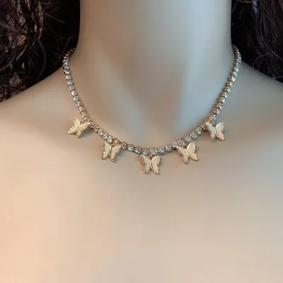 Ожерелье с подвеской в виде бабочки, блестящая Стразы, 1 шт., для ж...