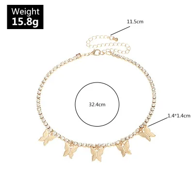 Горячая Распродажа золотистого, серебряного цвета, кулон в виде бабочки, ожерелье, Женский Блестящий Кристалл, цепочка для ключицы, Модный новый дизайн, вечерние ювелирные изделия, подарок
