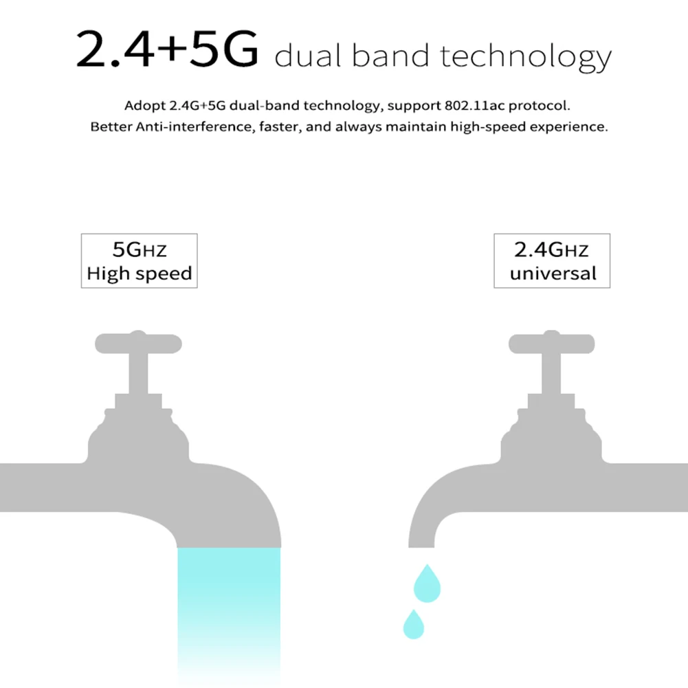 Более высокая скорость: поддерживает 802.11ac Wi-Fi с двухдиапазонный (с) Wi-Fi 5 ГГц + 2,4 ГГц). Двухъядерный, двойной декодер (H.265 / H.264), поддержка высокой четкости 4K * 2K.