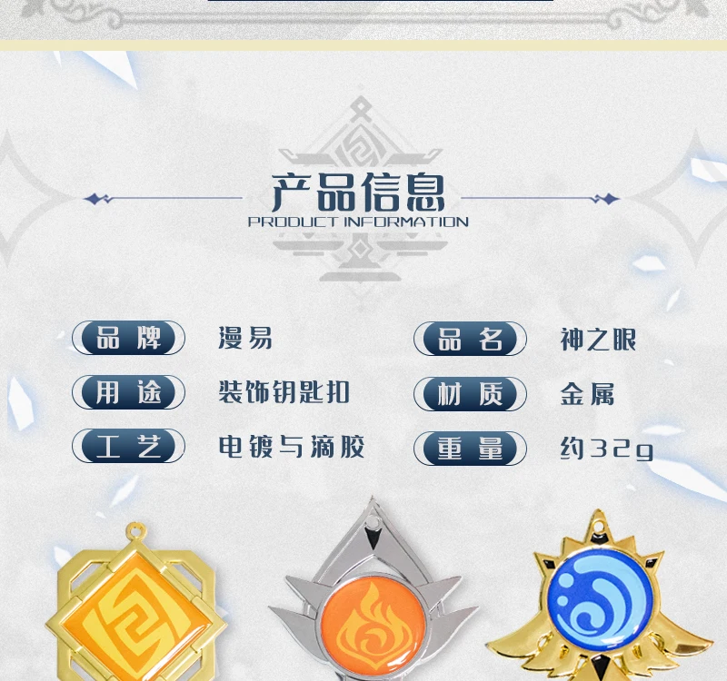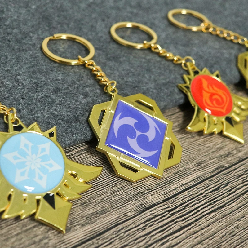 Брелок для ключей ювелирные изделия аниме Genshin Impact Юэ Харбор металлические брелки Косплей 7 элементов Оружие глаз Божий аксессуары брелок