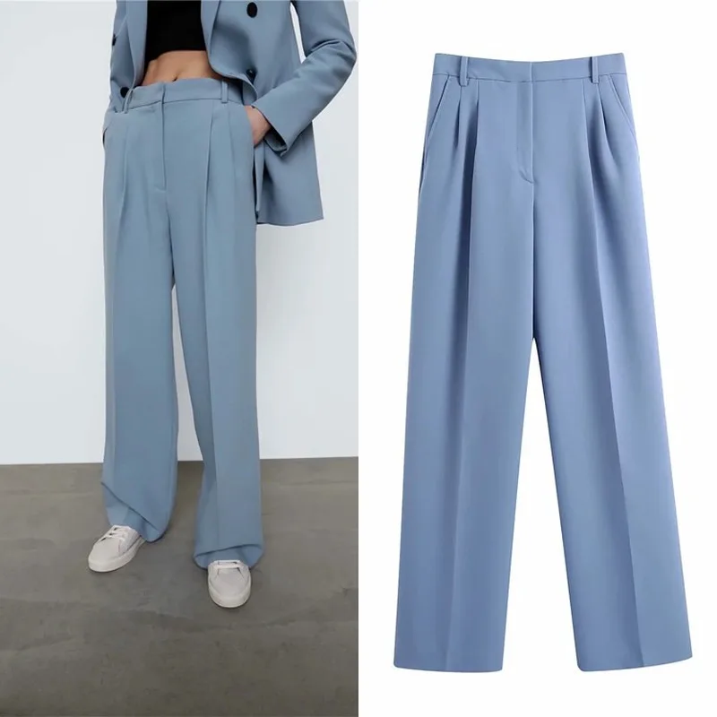 Женские брюки с отложным воротником ZA, однотонные повседневные сво...