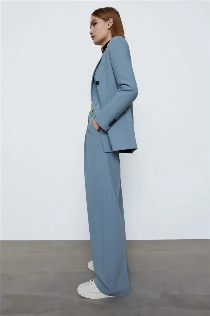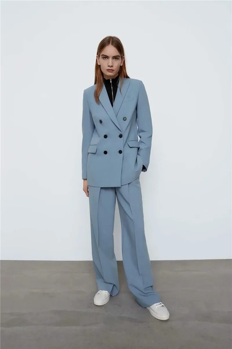 Женский костюм из двух предметов, голубой двубортный пиджак и повсе...