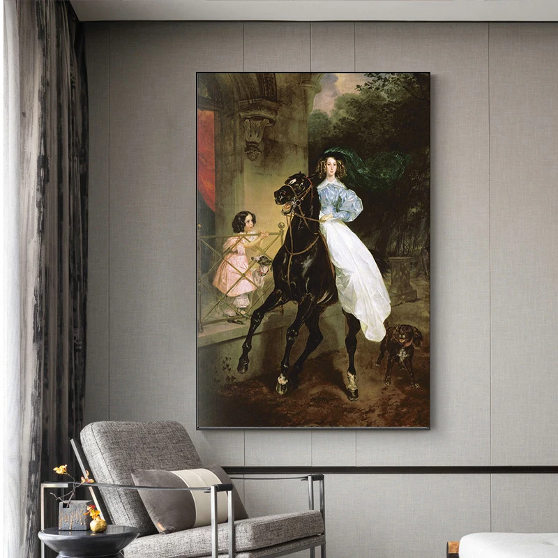 Холст с изображением индийской женщины и белой лошади, художественн...