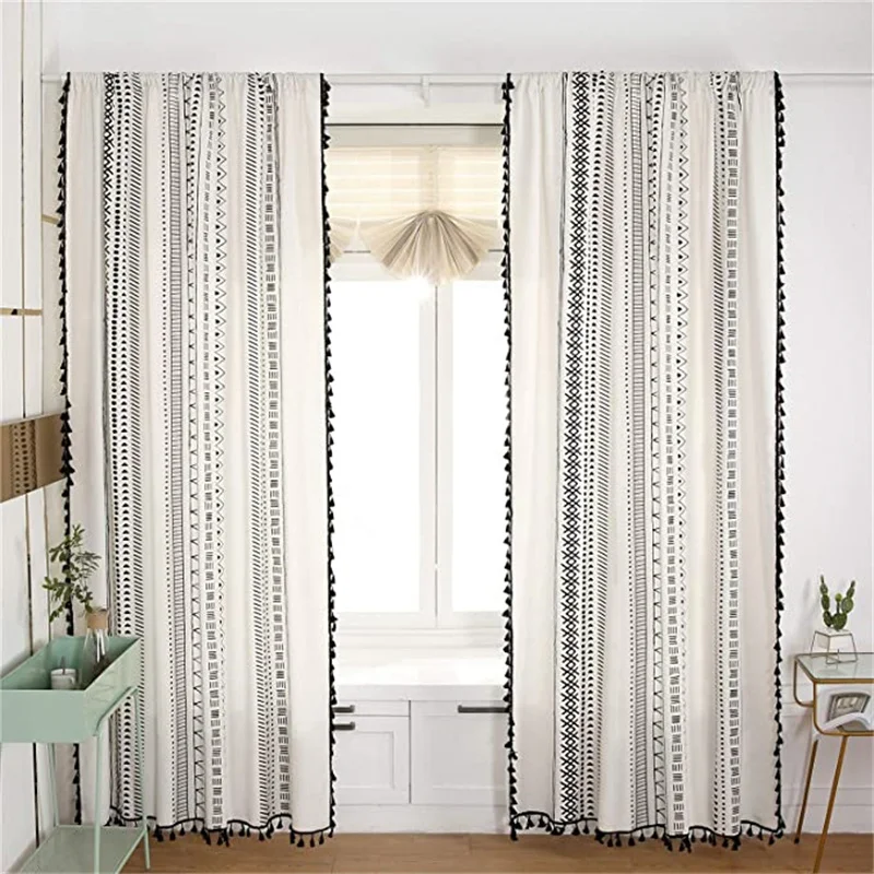 Льняная занавеска для гостиной, спальни, с геометрическим рисунком