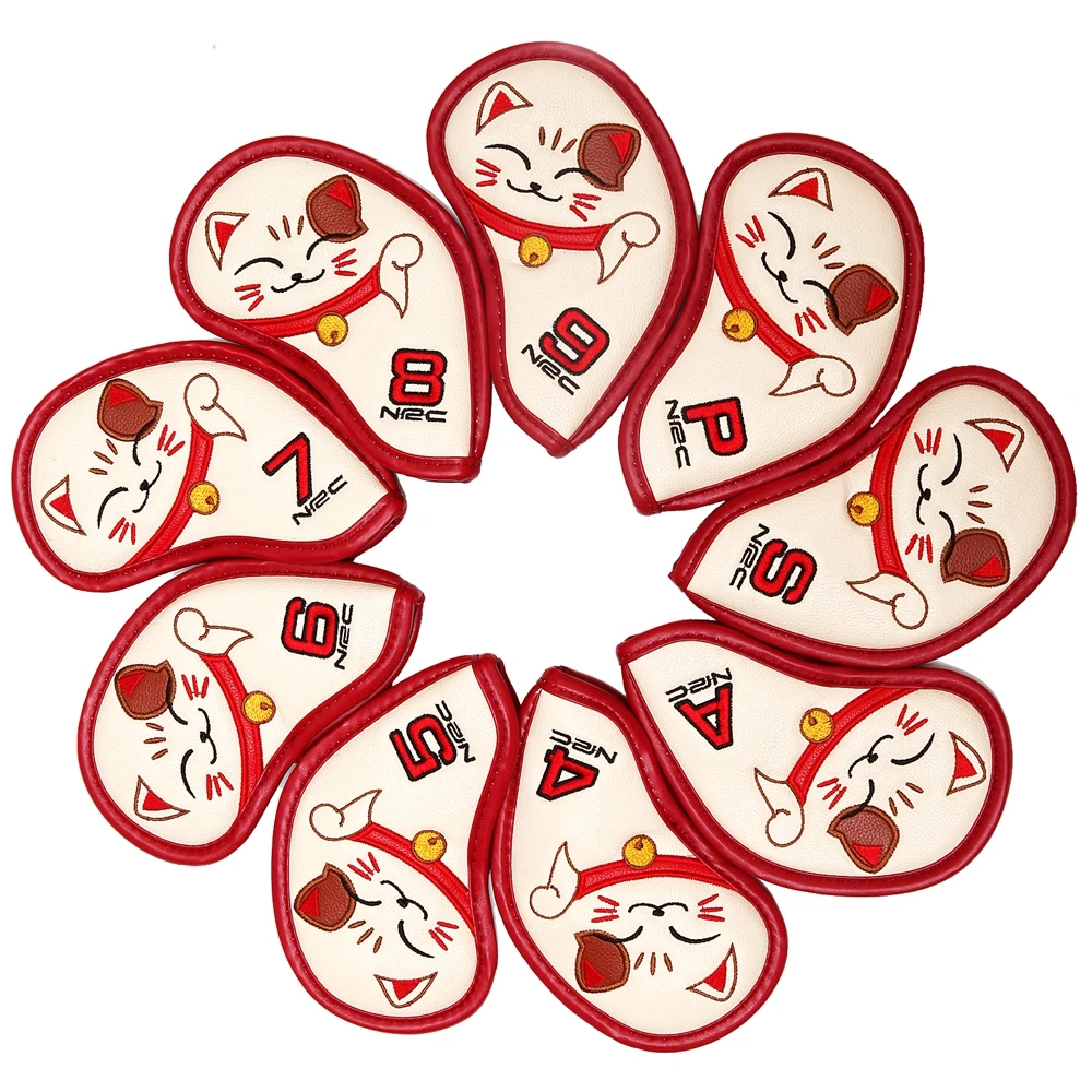 Чехол из искусственной кожи с вышивкой котенка для головы гольф-клуба для водителя Fairway Wood Hybird Blade Mallet Iron Putter
