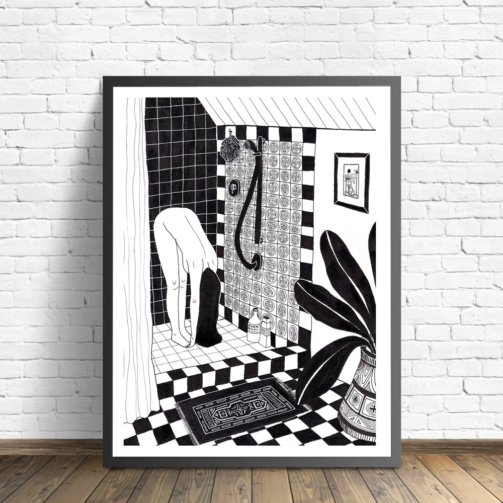 Абстрактная линия печать сексуальная женщина обнаженная девушка пла...
