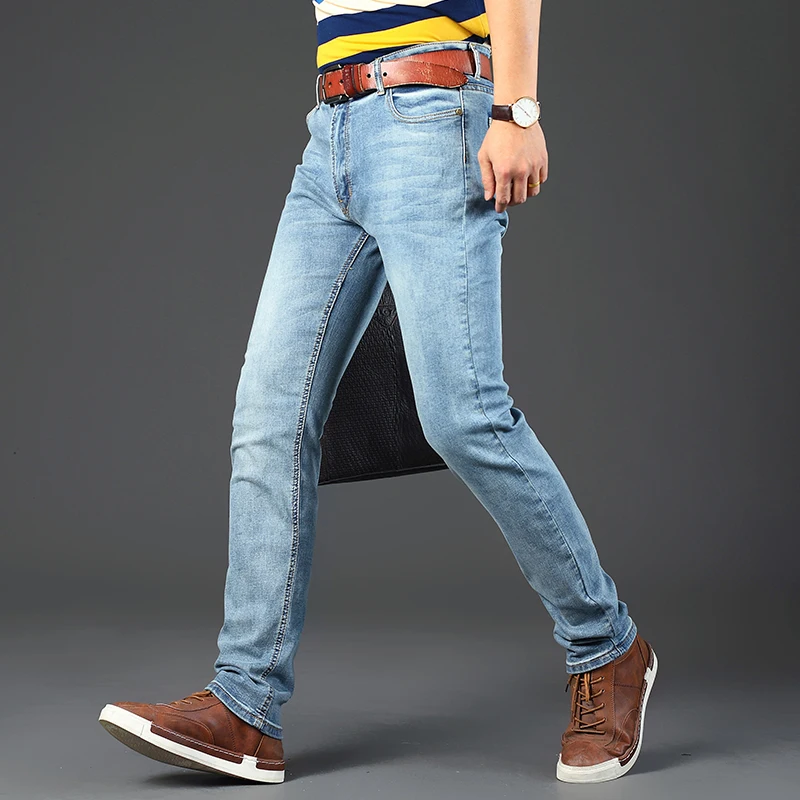 Мужские деловые джинсы, Классические хлопковые Стрейчевые брюки на четыре сезона, зауженные брюки, лето, 2021