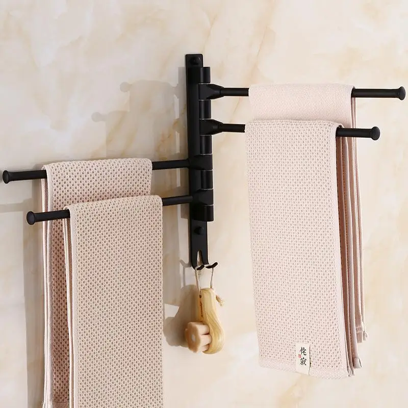 Вешалка для полотенец в ванную комнату, черная, из алюминия, с вращ...