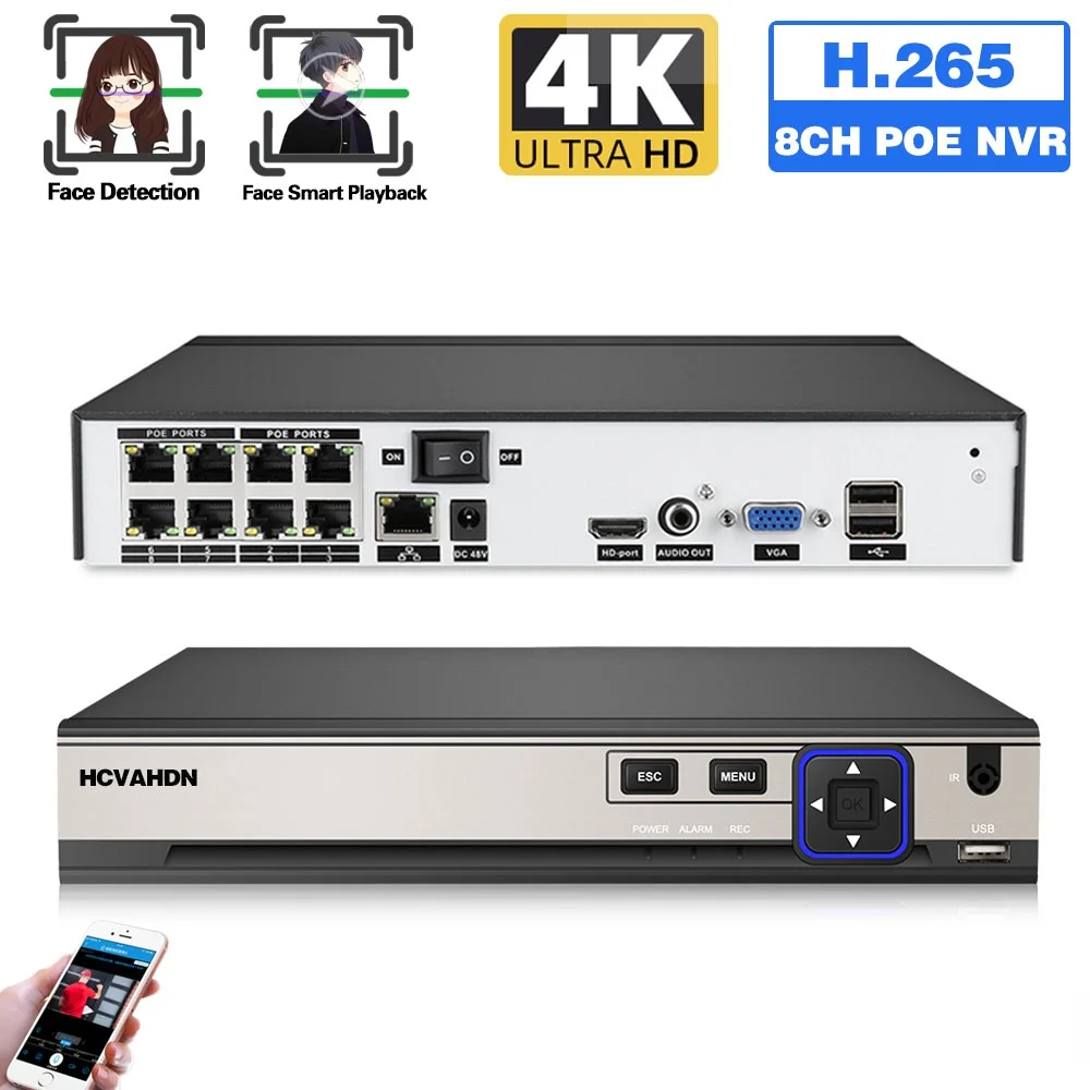 Сетевой видеорегистратор, 4k 8 каналов, для систем IP-камер, обнаружение лиц, 8 каналов, POE, 8 Мп, XMEYE, сетевой видеорегистратор для систем видеонаблюдения