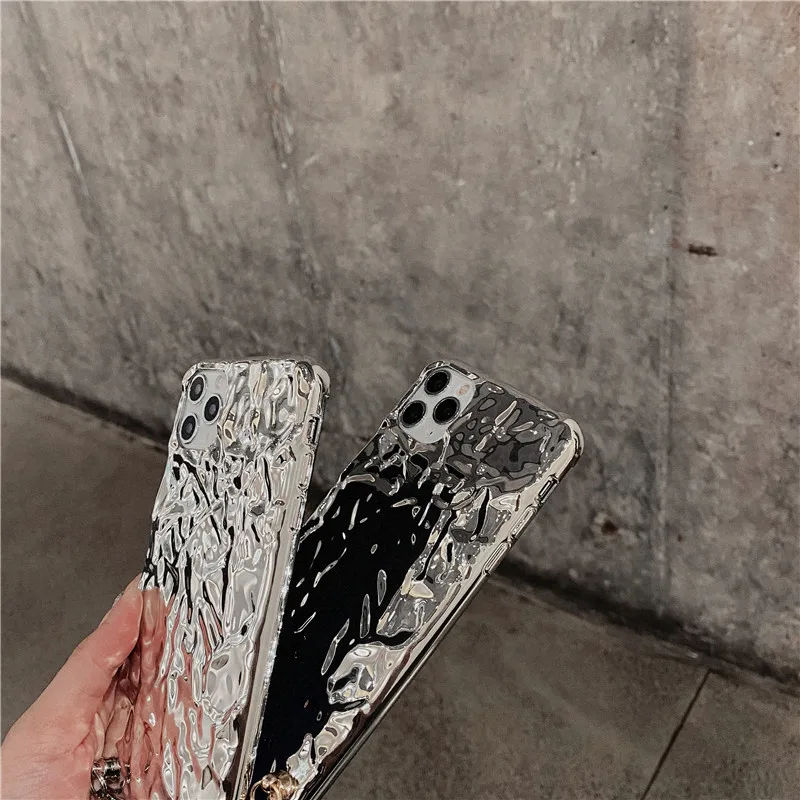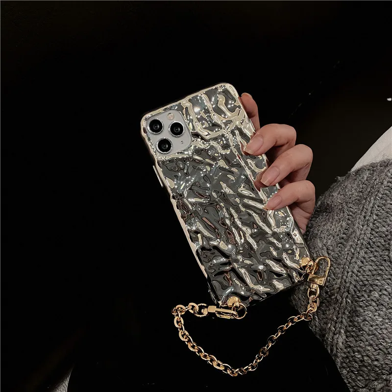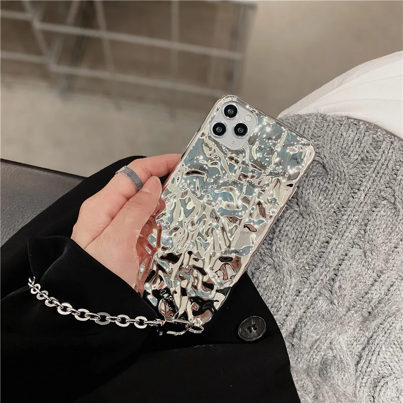 Чехол для iphone 12 Pro Max MiNi 11 Pro Max XR X XS Max 7 8 plus SE 2020, гальванизированный, плиссированный, металлическая цепочка из фольги