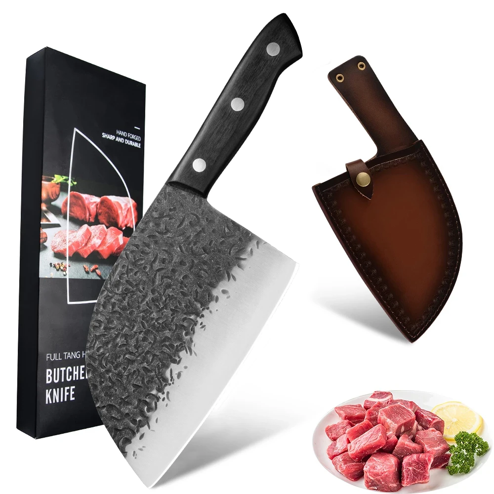 7-дюймовый сербский шеф-нож мясника, кожаный чехол-футляр для кемпи...