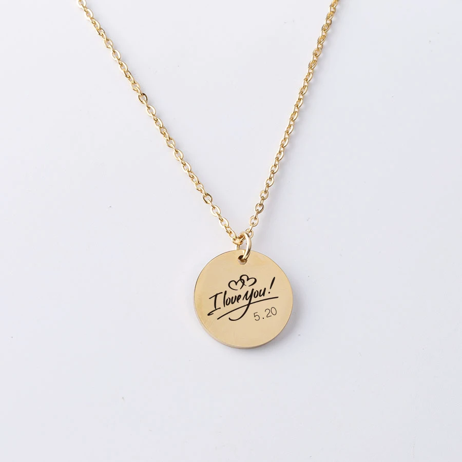 Fnixtar 10 шт. 20 мм лазер I Love You круглый диск Кулон ожерелье цепь из нержавеющей стали ожерелье для женщин мужчин подарки ювелирные изделия