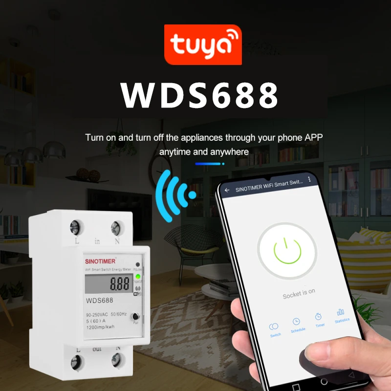 Измеритель мощности Smart Life Tuya, Wi-Fi WDS688, Din-рейка, однофазный монитор умный измеритель энергии, ток, напряжение, мощность, энергия 90-250 В