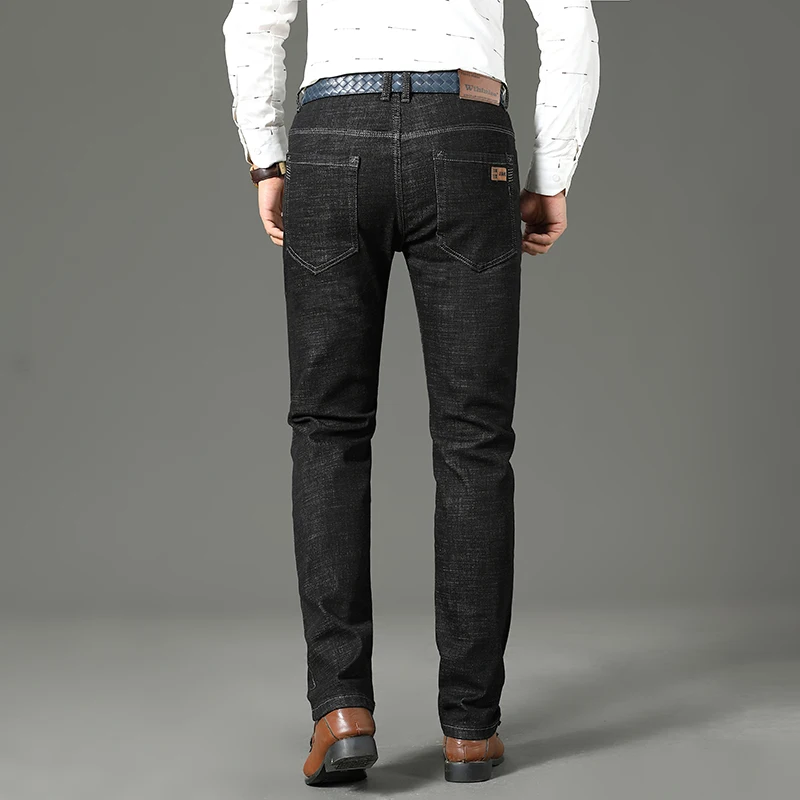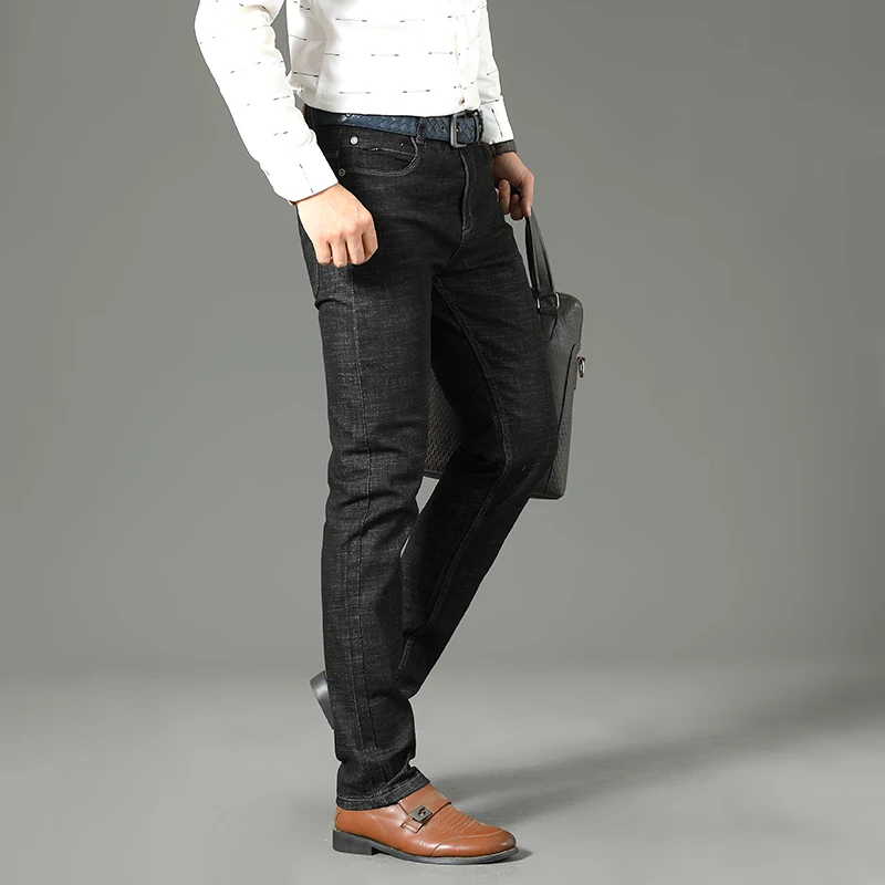 Джинсы мужские классические, мягкие брюки из денима, повседневные деловые штаны, цвет черный, 2021
