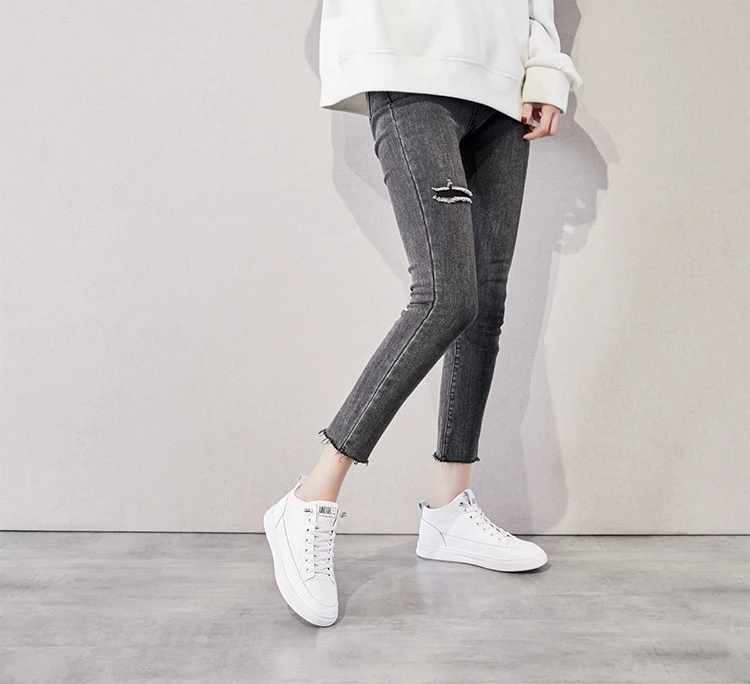 Женские кроссовки, Вулканизированная плоская подошва, удобная повседневная обувь, белые, на весну