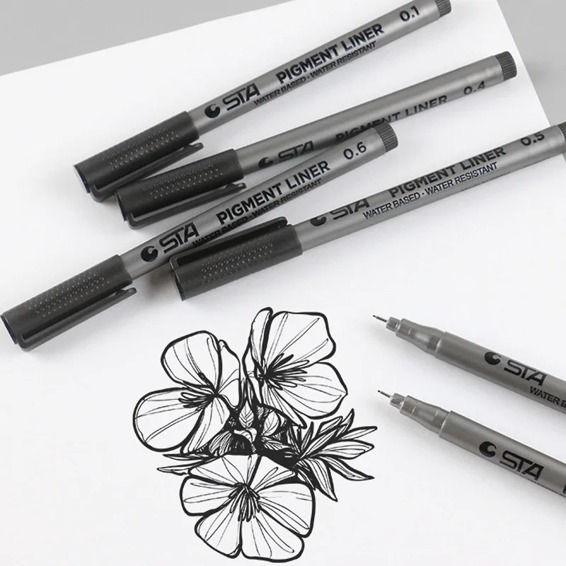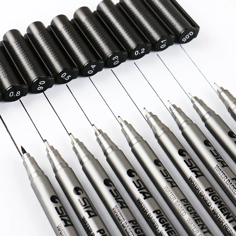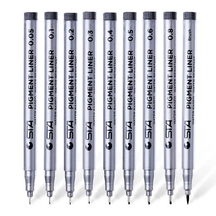 Ручка Микронная водостойкая STA 9 разных размеров, тонкий лайнер, ч...