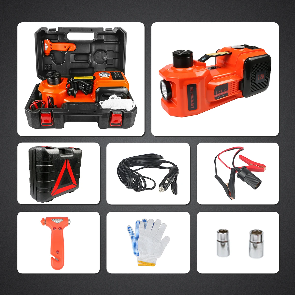 Электрический гидравлический домкрат для автомобильных шин, 12 В, 5 т, 45 см, 3 в 1, для пола с насосом, светодиодным фонариком, безопасный молоток, инструмент для ремонта шин