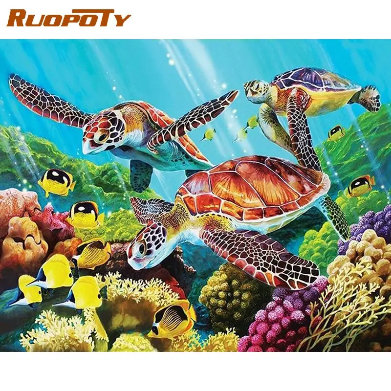 RUOPOTY алмазная живопись своими руками 5D морская черепаха Алмазная вышивка крестиком распродажа животных украшение для дома